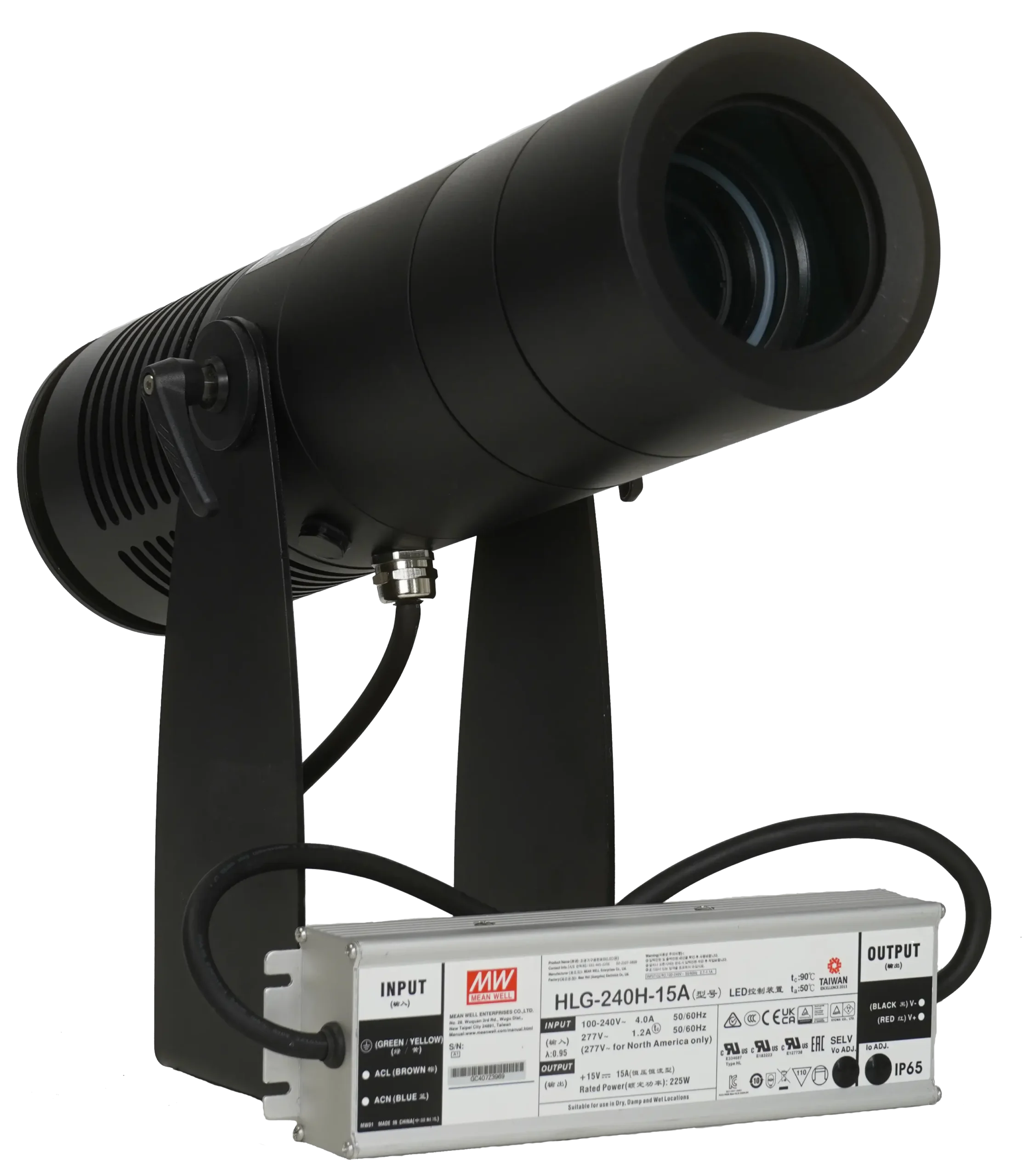 Проектор поддерживает установку сменной оптики с различными углами проекции, что позволяет адаптировать устройство под различные задачи. Совмещение качественной оптики и мощного светодиодного модуля обеспечивает высокую чёткость, равномерность и яркость изображения. Используются гобо слайды из закалённого стекла, позволяющие воспроизводить любые изображения с высокой точностью.