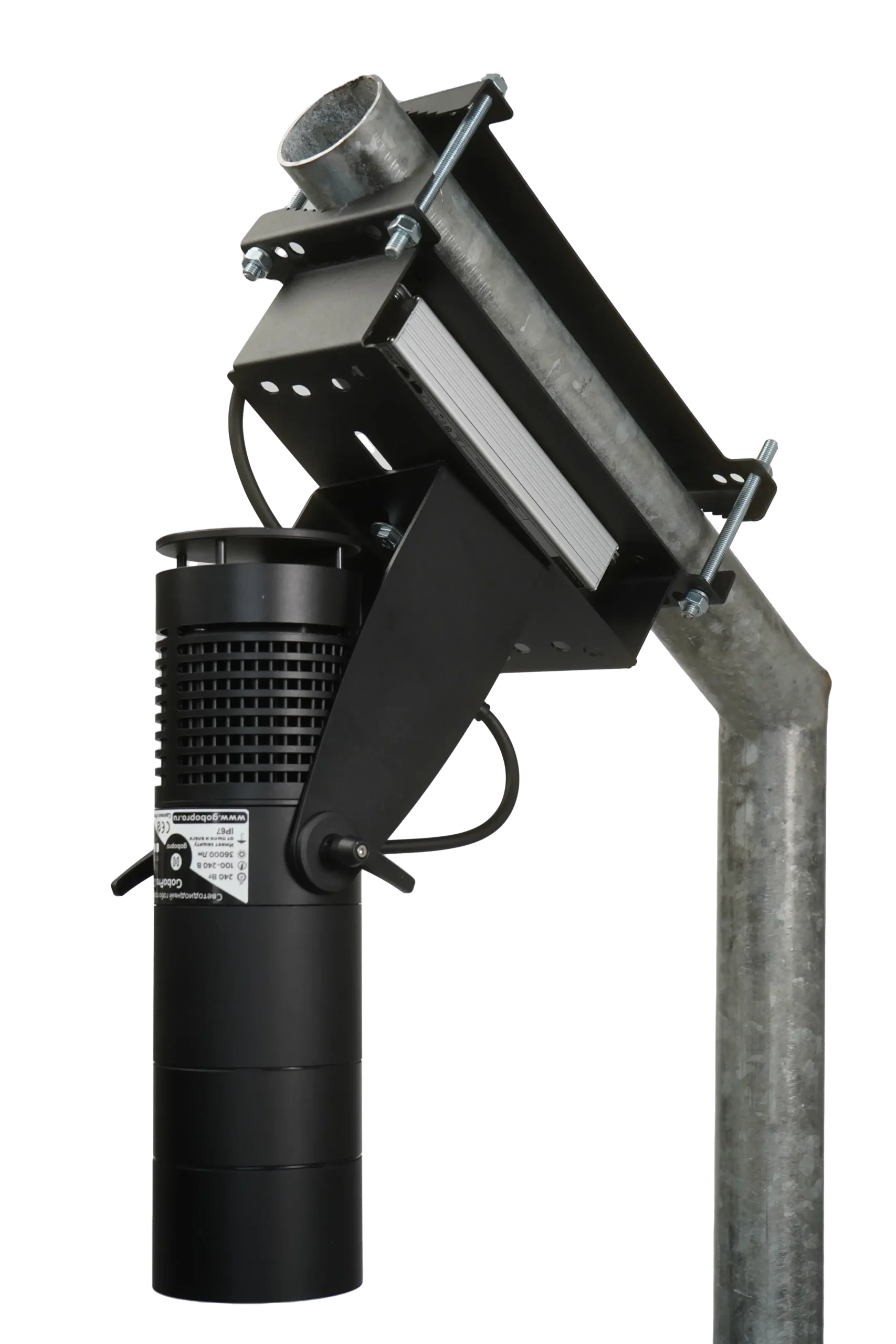 GoboPro X240 — это первая модель гобо проектора, разработанная в России. Устройство представляет собой надёжный светодиодный проектор мощностью 240 Вт, оснащённый высокоэффективным светодиодом OSRAM. GoboPro X240 предназначен для широкого спектра задач: проекция пешеходных переходов, дорожной и производственной разметки, обозначение опасных зон (в том числе под мостовыми кранами), архитектурная подсветка с точным воспроизведением геометрии фасадов, проекционная реклама, оформление пространств с использованием декоративных текстур, ландшафтное освещение и другие визуальные решения.
